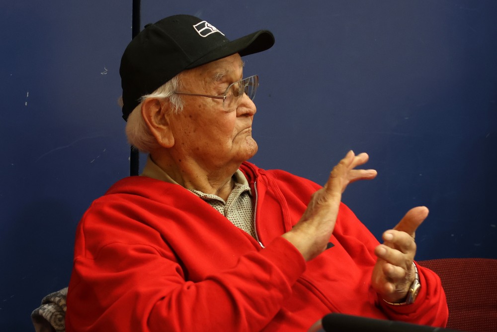 Charleson was known for wearing the Hesquiaht Braves jersey No. 24. Red and white tournament sweaters featured the No. 24 and kids ran around the court with posters that read, ‘Do it for Grandpa No. 24’.