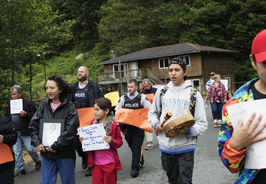 Tla-o-qui-aht First Nation holds march to speak out against drugs, alcohol, and abuse